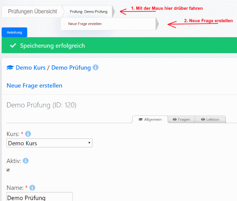 Erste Lektion erstellen