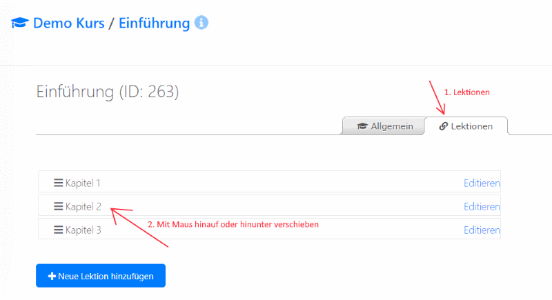Module und Lektionen sortieren
